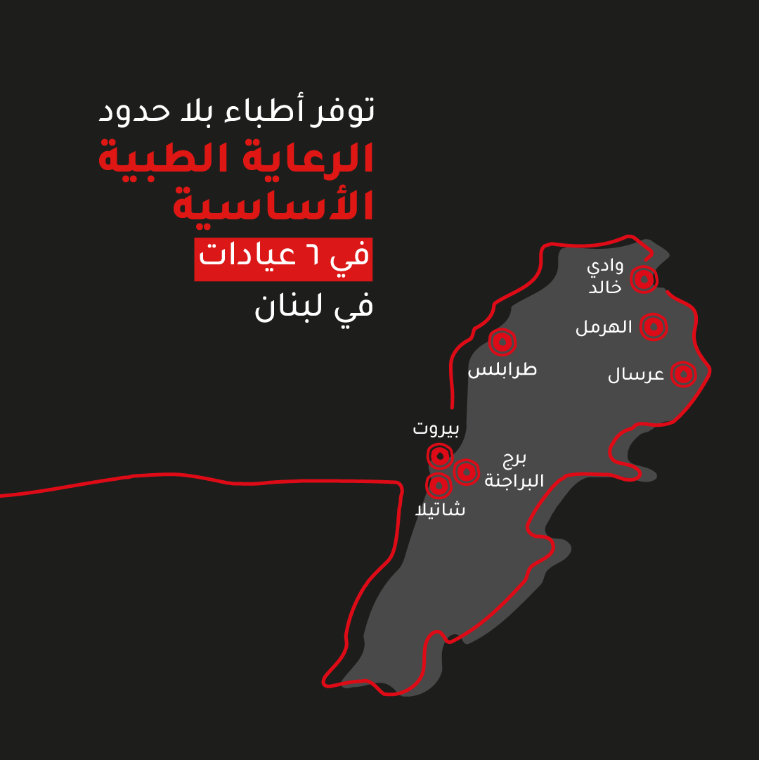 اليوم، تشغّل أطباء بلا حدود نحو ست عيادات للرعاية الصحية الأساسية في شمال لبنان وشمال شرقه وفي بيروت، بما في ذلك مركز ولادة في مستشفى رفيق الحريري الجامعي في بيروت. وتتنوع خدمات الرعاية الصحية التي توفرها بين دعم الصحة الإنجابية وخدمات الصحة النفسية وعلاج الأمراض غير المعدية وتوفير التطعيمات الروتينية للأطفال.